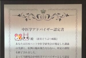 当院は、中医学を正しく学ぶ努力を日々惜しまず、国際資格を保有する動物病院です。